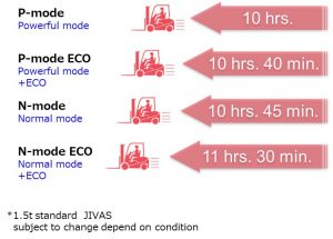 Đầu tiên là phải nói đến tính năng “ECO” tiết kiệm điện năng và kéo dài thời gian vận hành của xe nâng điện đứng lái Mitsubishi. Với 3 chức năng cho người sử dụng lựa chọn để phục vụ cho công việc sao cho hiệu quả nhất.