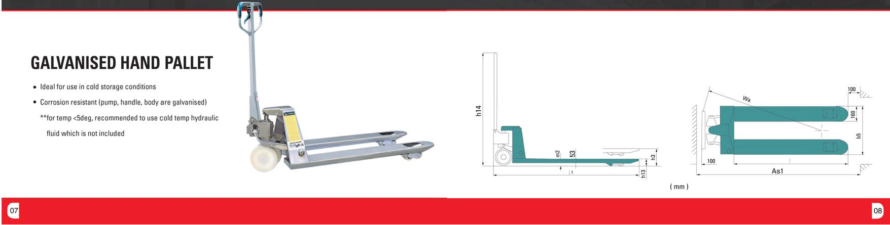 Ngoài ra, sản phẩm này còn thiết kế để sử dụng trong kho lạnh với sự tối ưu của bơm thủy lực, tay cầm và thân xe được mạ kẽm